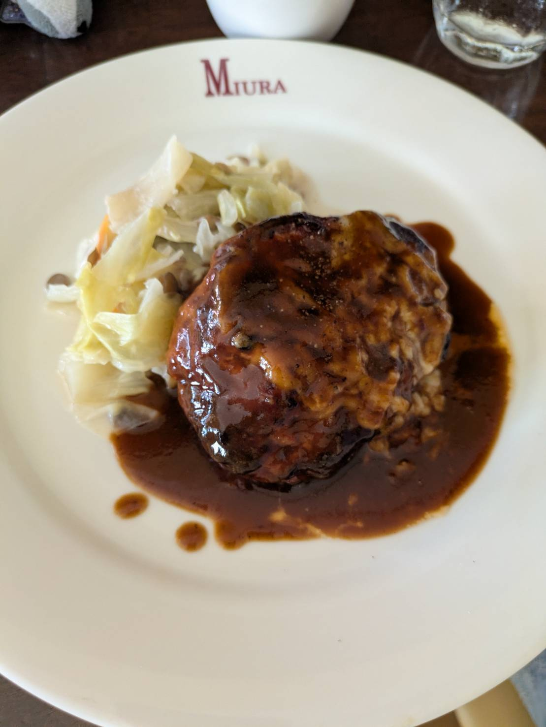 グリエールチーズを使ったハンバーグ。22年の歴史、秘伝のデミグラスが絶品!三浦亭の看板メニューその①です。