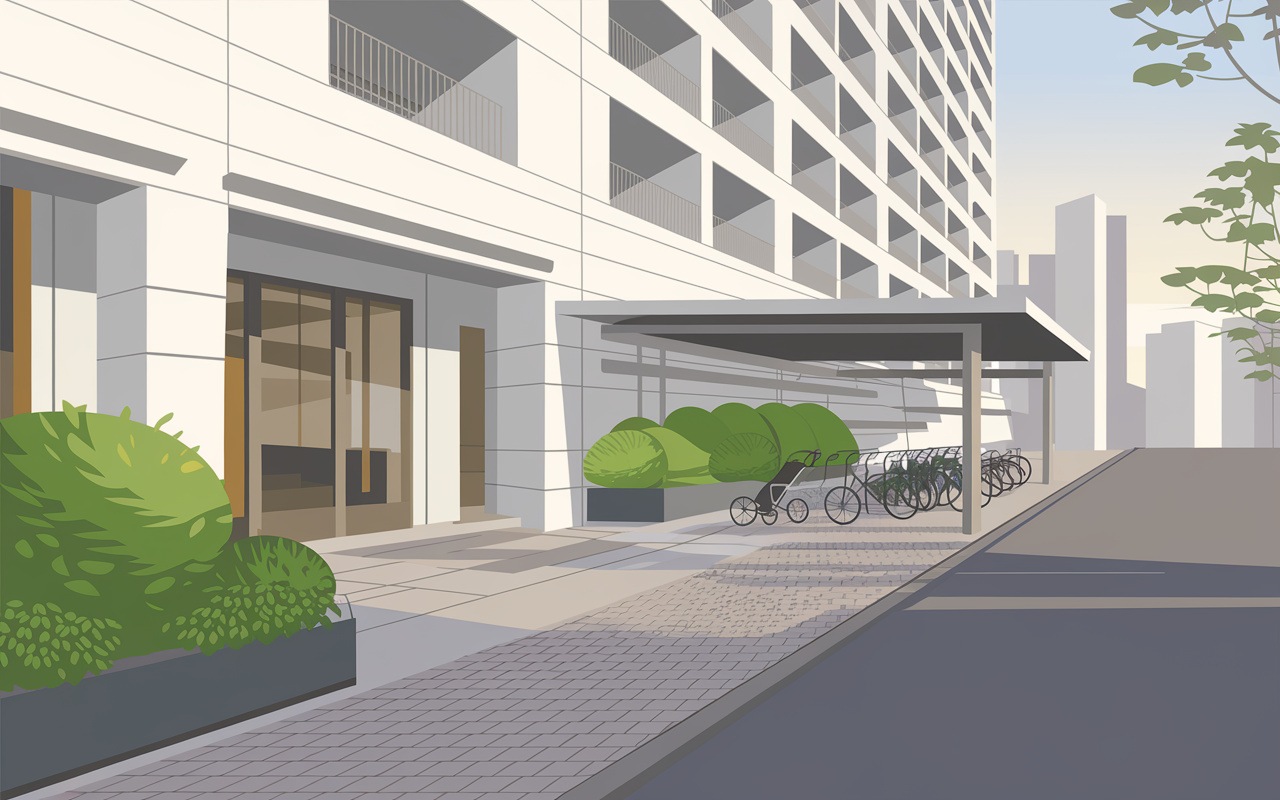 東京都中央区は都心ながらファミリー層の居住ニーズも高く、高層マンションが多く立ち並ぶエリアです。自転車やベビーカーを利用する家庭にとって、安心して収納できる広さのある駐輪場があるのは、暮らしの快適さや安全性に直結します。都心では土地が限られているため、駐輪場が狭くなりがちな一方で、広さが確保されている物件は希少性が高く、貴重なライフラインとなります。